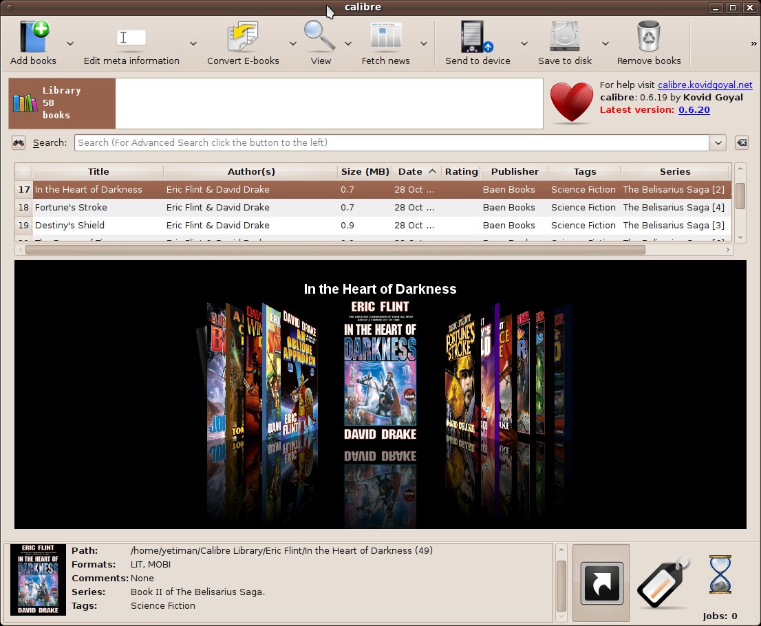 So I took the plunge and did a clean install of ubuntu 9.10. I had been running ubuntu 8.04 for a very long time now and I was getting tired of running into things that I couldn't install because of out of date libraries and such. One of those is calibre the open source ebook management tool. I managed to install it on 8.04 so that I could use the command line conversion tools but wasn't able to use the gui. That was just one of the things that I was wanting to use and couldn't. I'll get to the others later on.